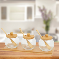 SZKLANE SŁOICZKI Z BAMBUSOWĄ PODSTAWĄ I ŁYŻECZKAMI