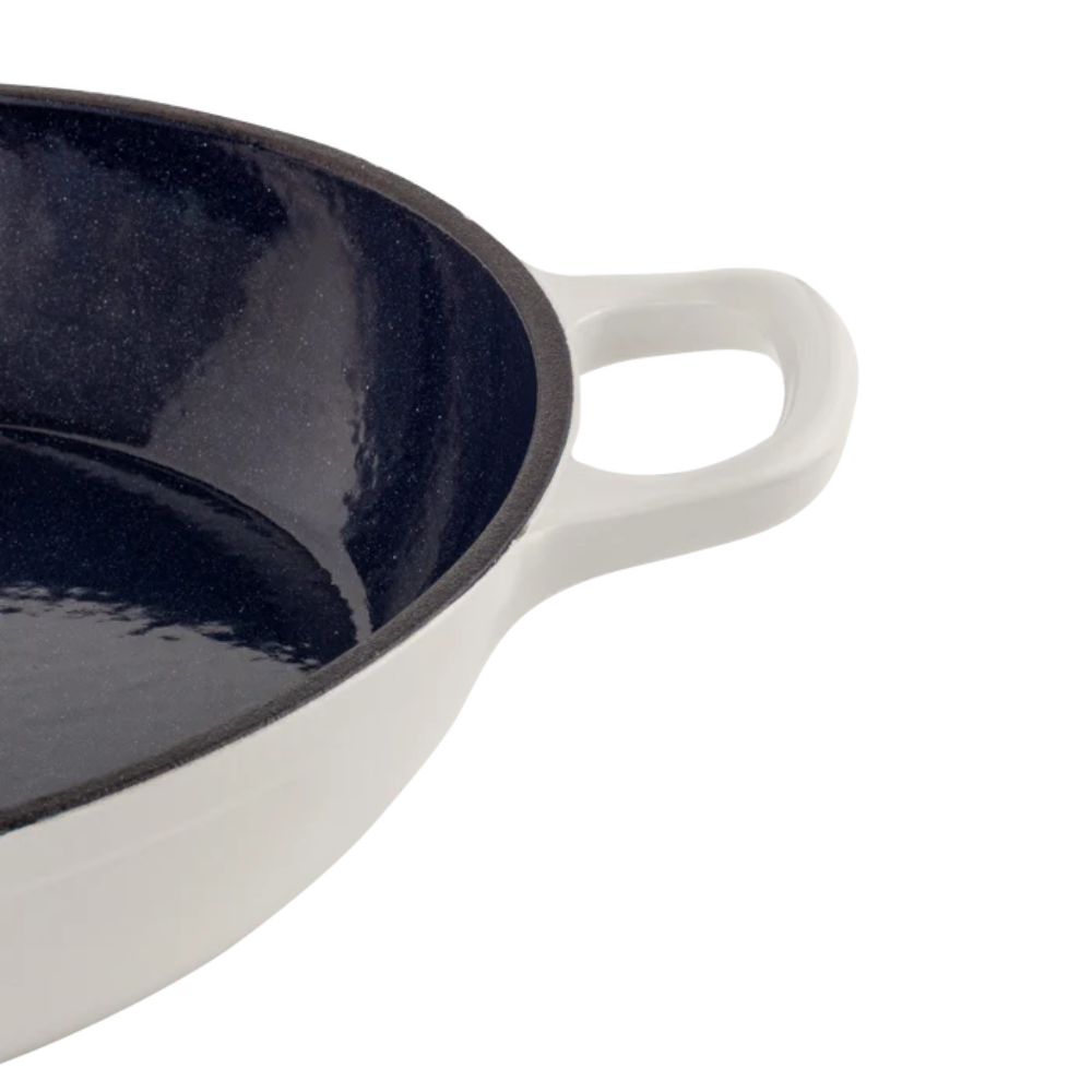 ✅ Nasza solidna i masywna patelnia to prawdziwa inwestycja. Odpowiednio konserwowana – natłuszczana posłuży przez wiele lat. Dlaczego? Ponieważ żeliwo to materiał bardzo trwały i odporny. Dzięki powłoce emaliowanej z łatwością utrzymasz naczynie w czystości.