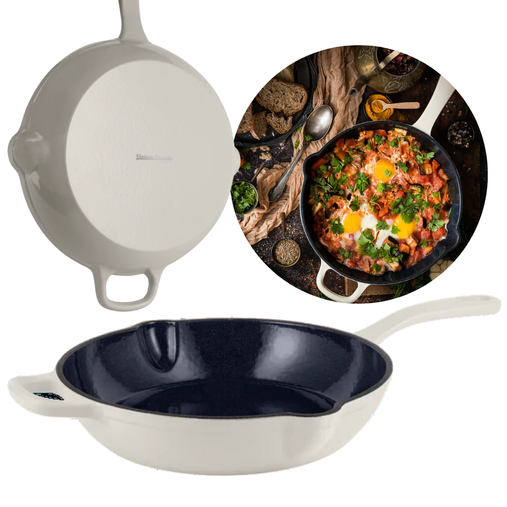 TRADYCYJNA PATELNIA EMALIOWANA ŻELIWNA 26CM ECRU VINTAGE CUSINE