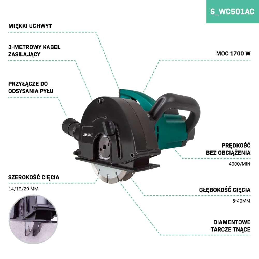 [OUTLET] VONROC Wielofunkcyjna bruzdownica 1700W- 150mm