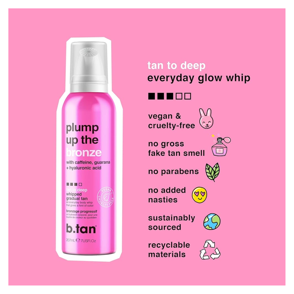 Marzysz o naturalnej, stopniowej opaleniźnie i jednocześnie zadbanej, jędrnej skórze? B.TAN Plump Up The Bronze to lekka pianka, która nie tylko nadaje kolor, ale także pielęgnuje i wygładza ciało.