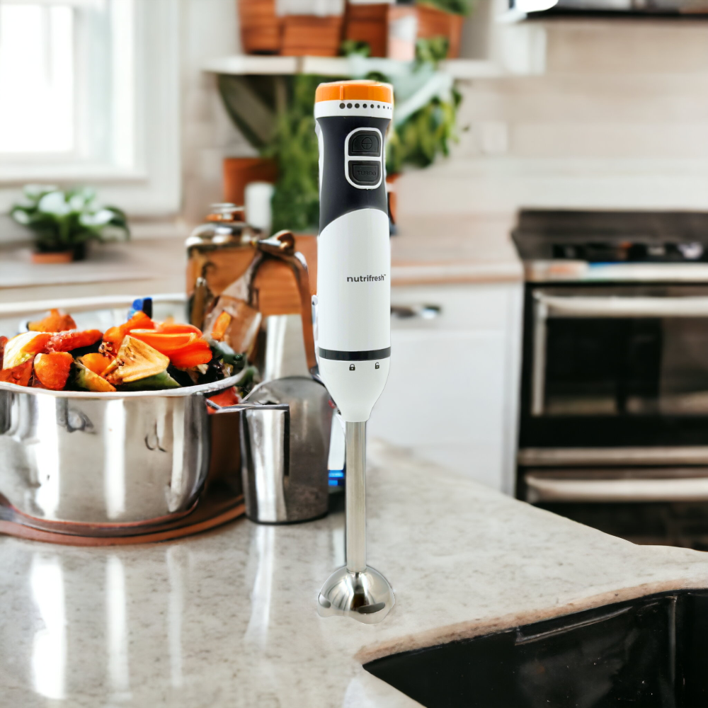 Jeśli jesteś miłośnikiem gotowania lub początkującym rodzicem , blender ręczny Nutrifresh, doskonały zestaw do miksowania, jest najlepszym pomocnikiem. Od koktajli i koktajli mlecznych po winegret lub żywność dla niemowląt, przekonasz się, jak łatwo można gotować jak profesjonalista we własnej kuchni.