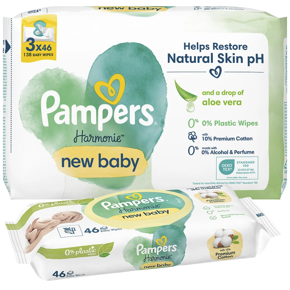 Pampers Harmonie New Baby Chusteczki nawilżane, 3x46szt.