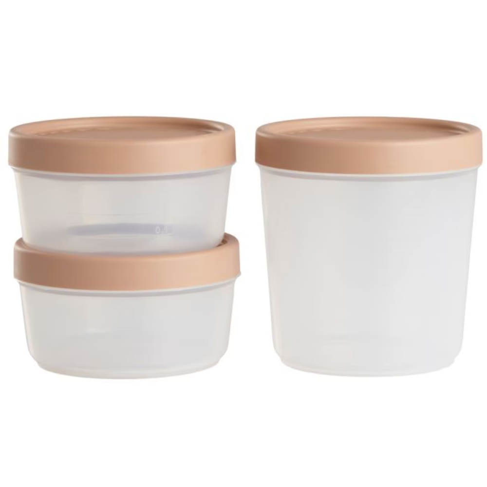 - Szczelne, dopasowane pokrywki w eleganckim, beżowo-brązowym kolorze zapobiegają wyciekom i utrzymują świeżość jedzenia.