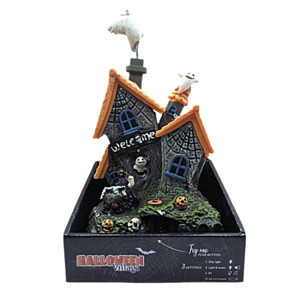 DEKORACJA DOMEK HALOWEEN GRAJĄCY POMARAŃCZOWY DACH