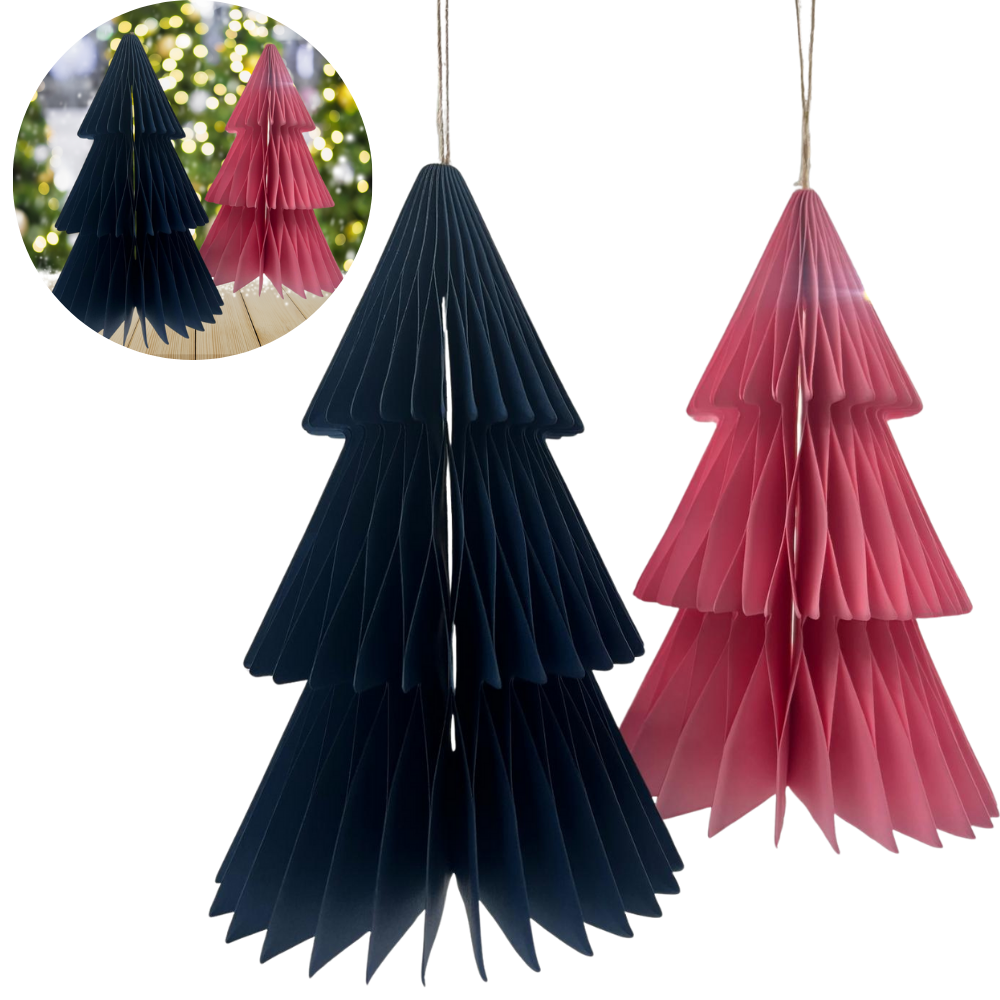DEKORACJA ŚWIĄTECZNA Z PAPIERU 3D OZDOBA CHOINKA 2SZT GRANATOWA, RÓŻOWA
