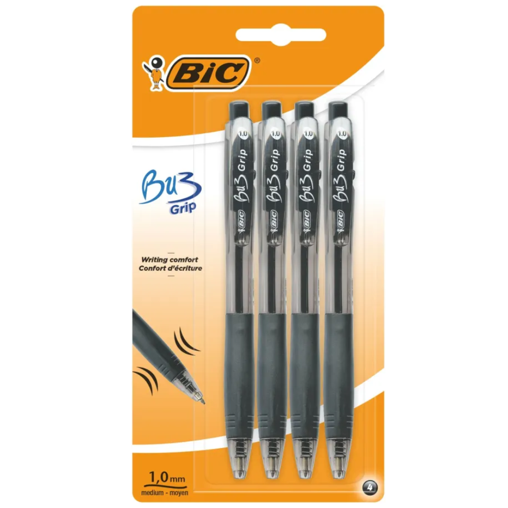 DŁUGIPISY CZARNE BIC STYLO NOIR 4PCS BU3GRIP - CONFORT ECRITURE