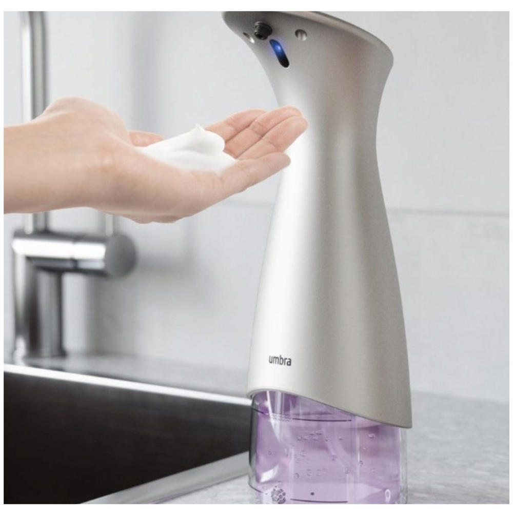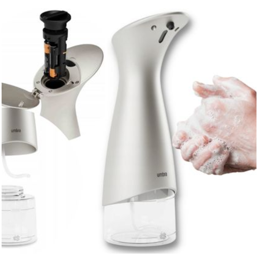 Marka Umbra zaprojektowała innowacyjny, automatyczny dozownik na mydło w płynie w kolekcji Otto. Sprawdzi się zarówno w łazience na mydło do rąk jak i eleganckiej kuchni na płyn do naczyń. Jego sukces tkwi w wyjątkowym, nowoczesnym wyglądzie oraz automatycznemu podajnikowi do mydła. Wystarczy podłożyć rękę pod czujnik, a system sam zadecyduje o odpowiedniej ilości płynu. Taki model umożliwia zminimalizowanie dotykania dozownika, na którym również mogą się znajdować bakterie niewidoczne na pierwszy rzut oka. Kolor srebrny zaliczany jest do barw ekskluzywnych, które pasują do każdego typu wnętrza.