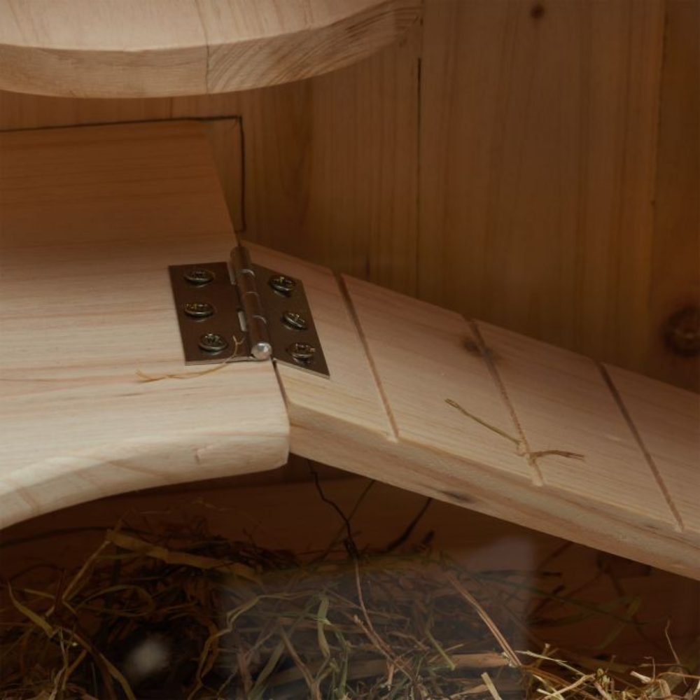 Dach z drucianą kratką zapewnia przepływ powietrza w klatce. Zarówno dach, jak i przednie drzwiczki zamykane są na praktyczny haczyk. Przezroczyste okienka umożliwiają Ci obserwację Twojego ulubieńca przez cały czas!