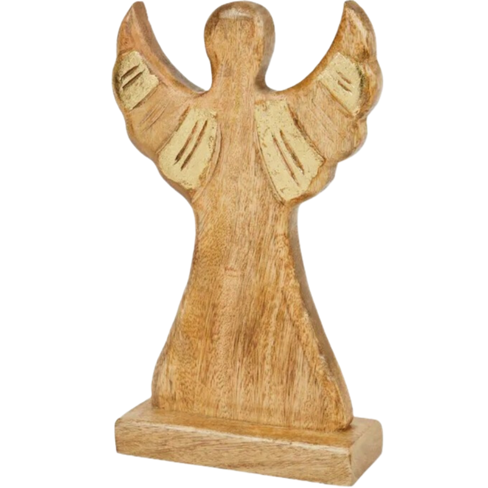 DREWNIANY ANIOŁ FIGURKA BOŻEGO NARODZENIA 27CM ZE ZŁOCENIEM DEKORACJA