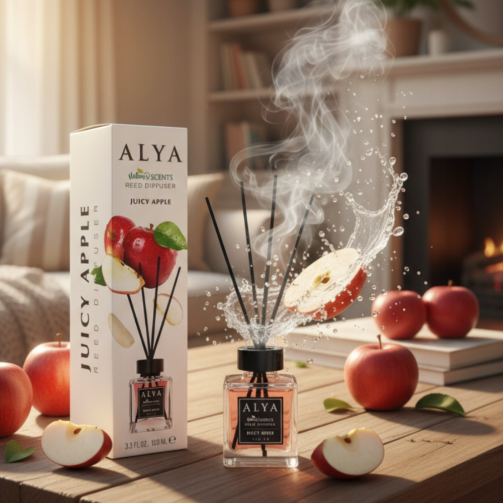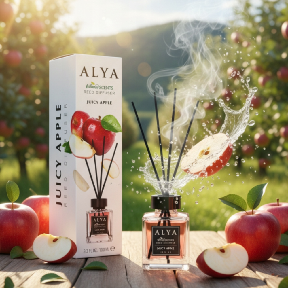 Odkryj intensywny, świeży i energetyzujący zapach soczystego jabłka! Dyfuzor zapachowy Alya Juicy Apple wypełni każde pomieszczenie aromatem chrupiących, słodko-kwaskowatych jabłek, tworząc przyjemną atmosferę relaksu i świeżości.