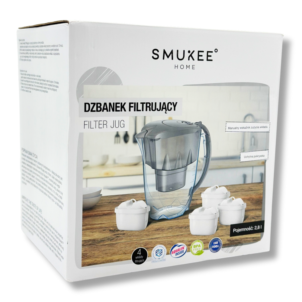 DZBANEK FILTRUJĄCY DO WODY 2,8L + 4 WKŁADY SZARY SMUKEE ZESTAW STARTOWY