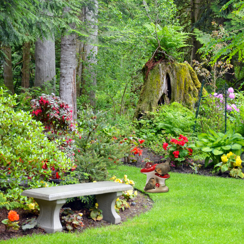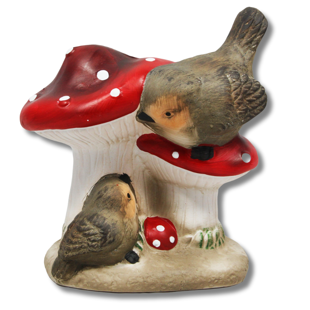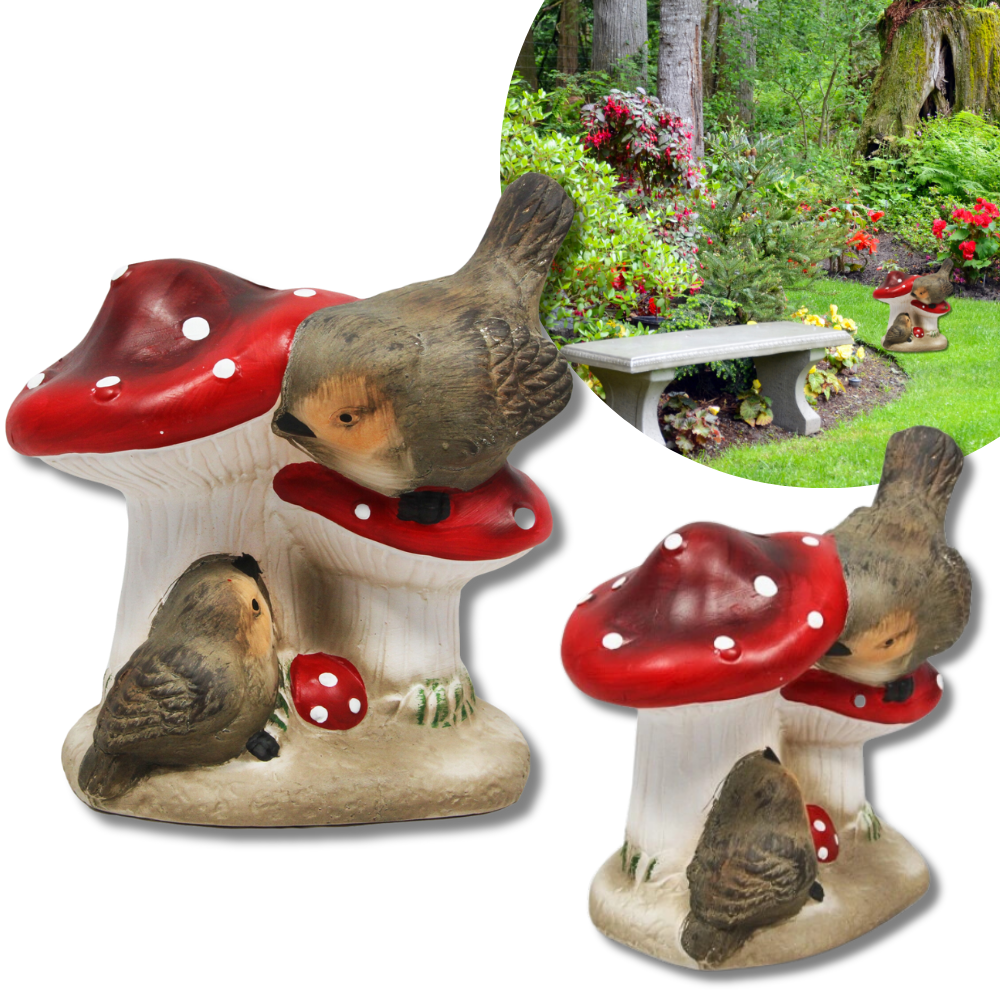 FIGURKA GRZYB I PTAK OGRODOWA, NA BALKON LUB TARAS