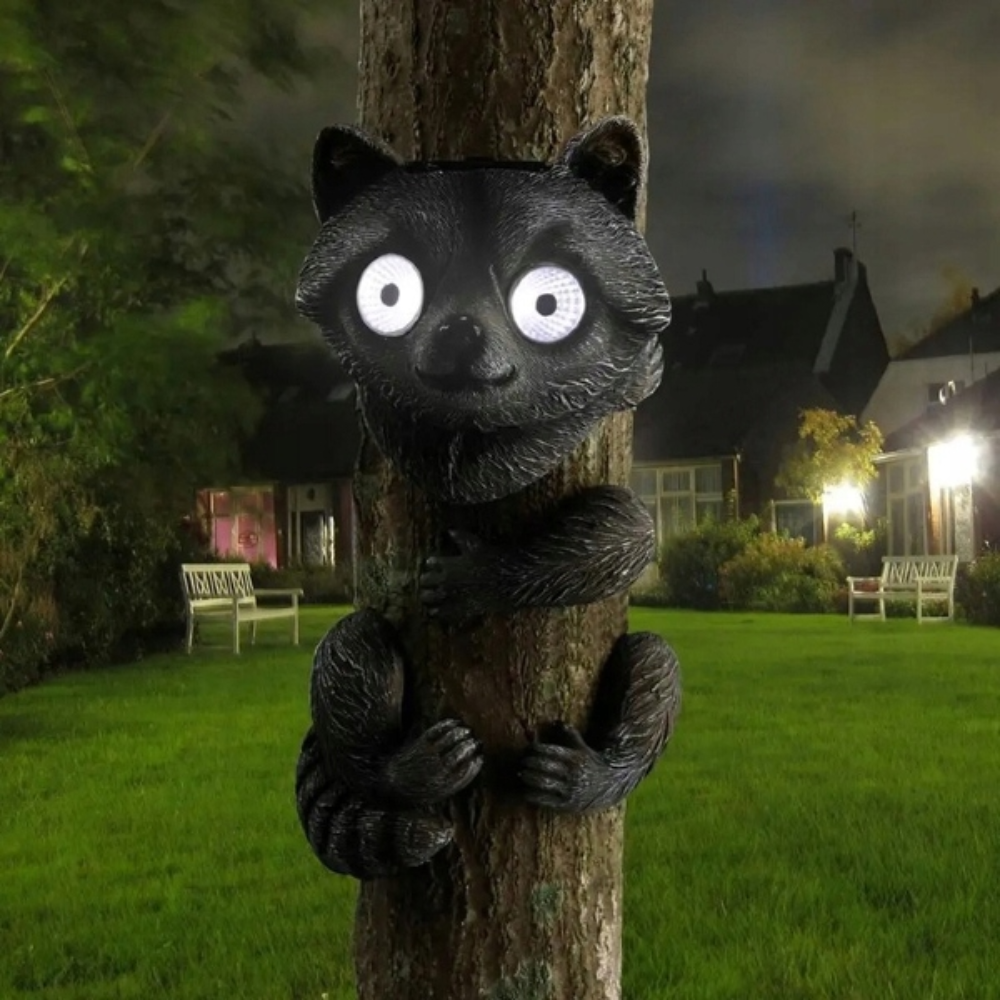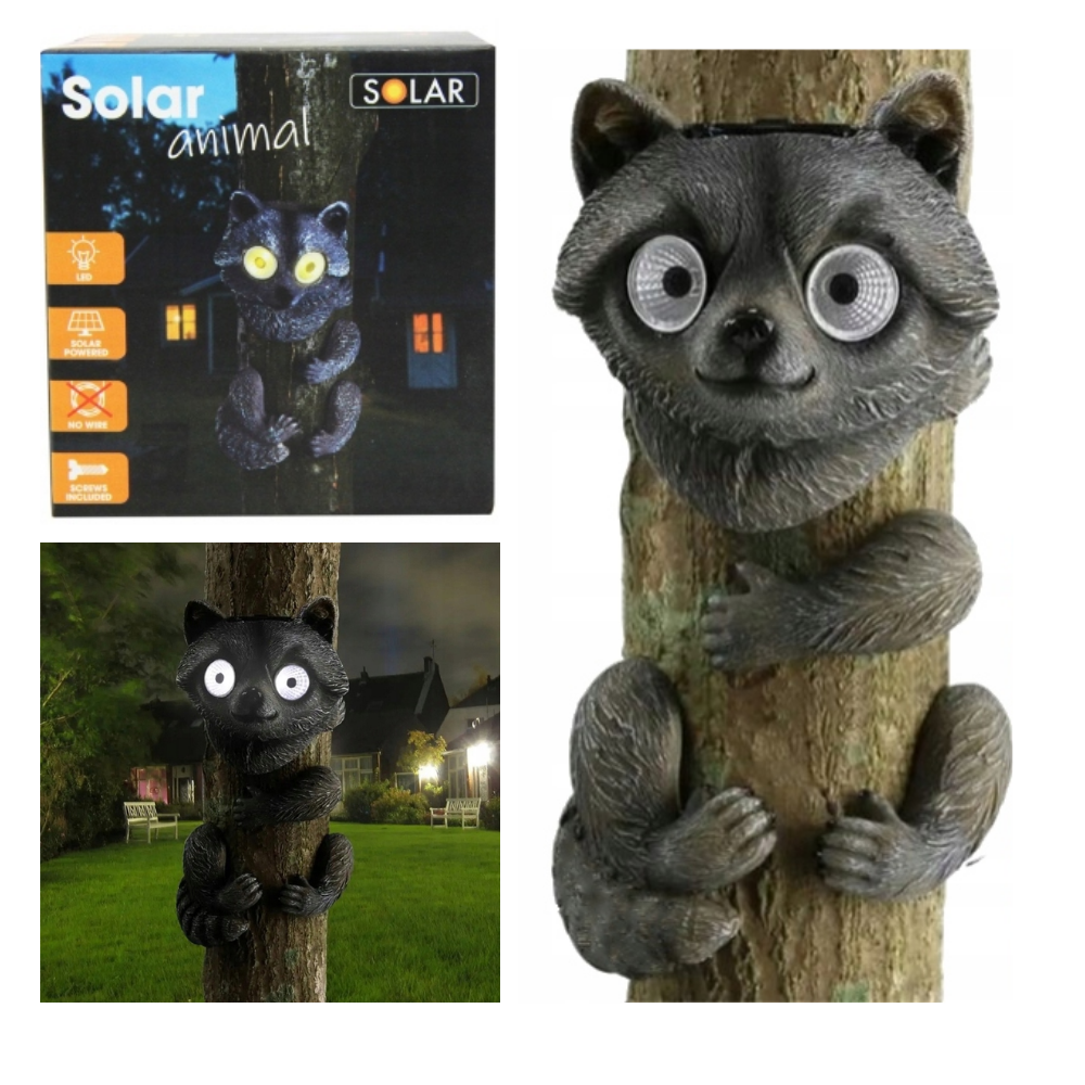 FIGURKA SOLARNA WISZĄCA NA DRZEWO ZWIERZĄTKO WILK ŚWIECĄCE OCZY 2 LED