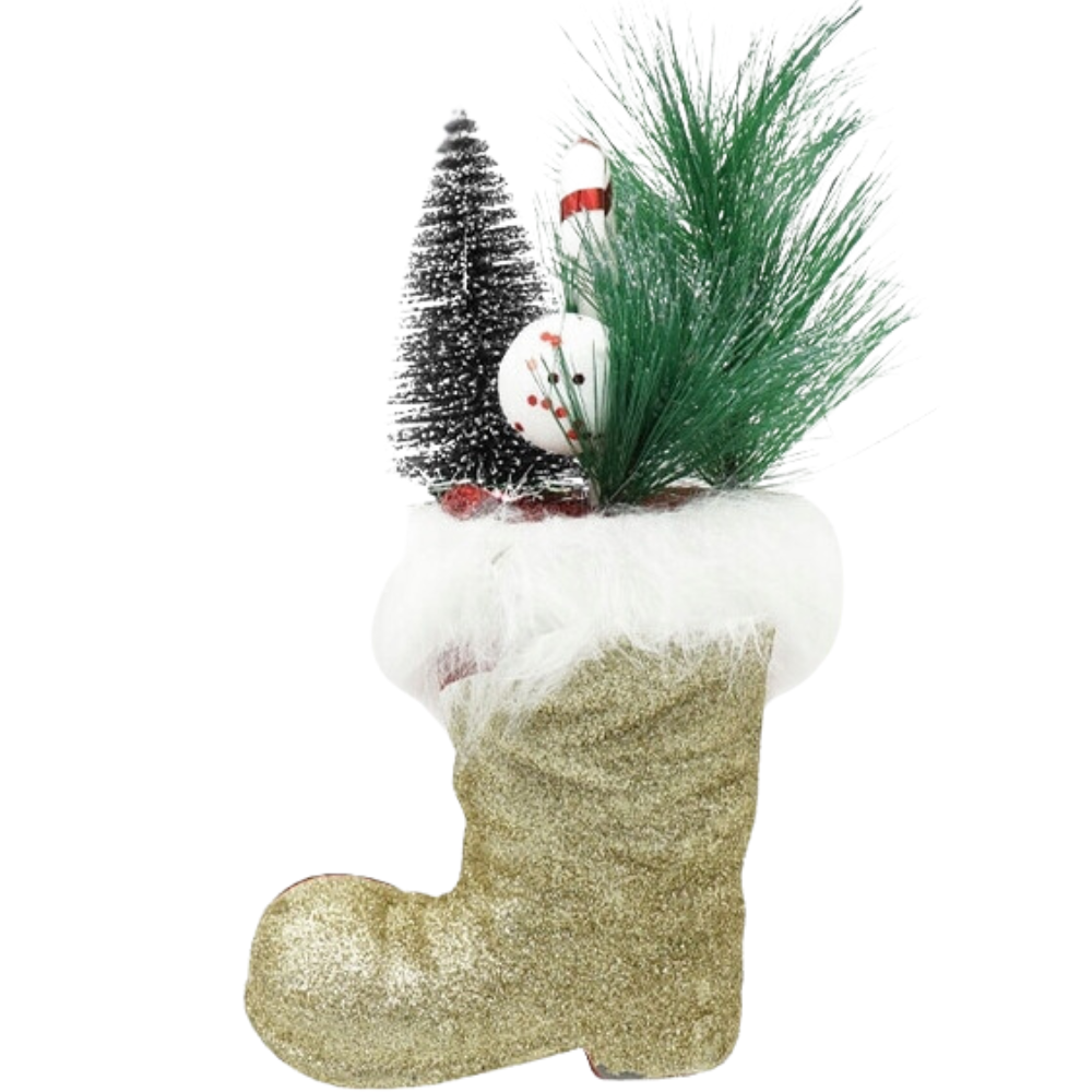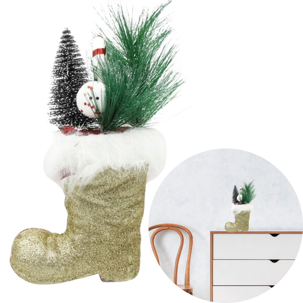 FIGURKA ŚWIĄTECZNA ZŁOTY BROKATOWY BUT STROIK 24CM