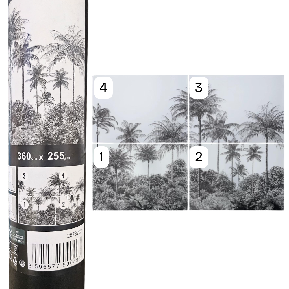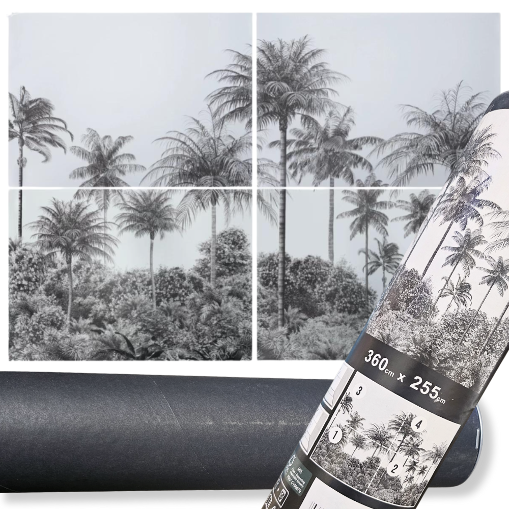 FOTOTAPETA XXL W TUBIE 360X255 PALMY CZARNO-BIAŁE TAPETA NA ŚCIANĘ + KLEJ