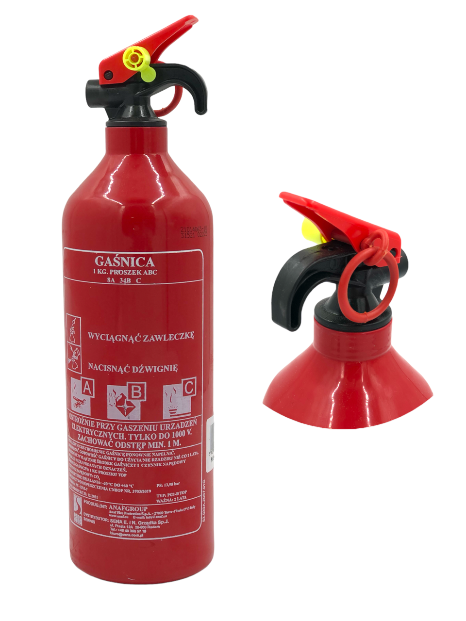 Gaśnica do samochodu wyprodukowana przez włoską firmę ANAFGROUP.