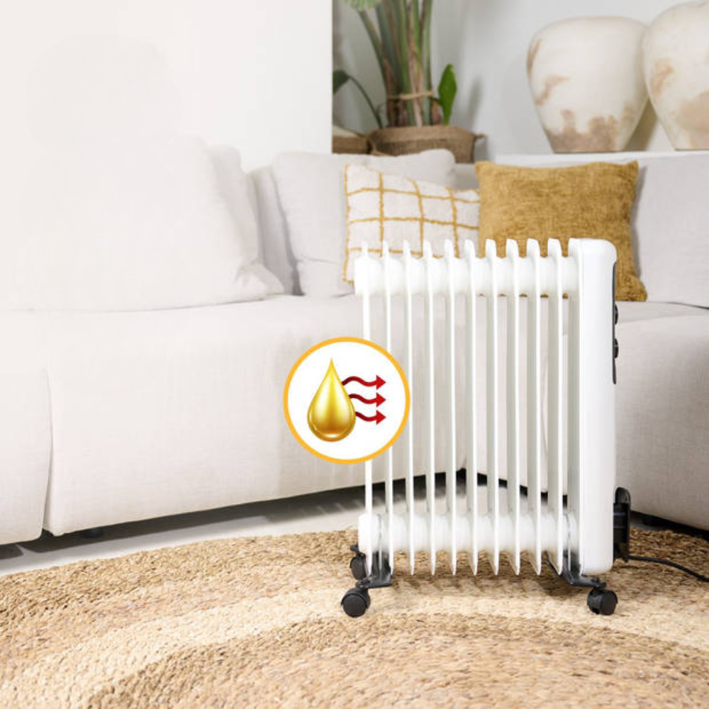 Chłodnica oleju jest bezpieczna w użytkowaniu dzięki zabezpieczeniu przed przegrzaniem i przewróceniem. Dzięki temu idealnie nadaje się do stosowania w całym gospodarstwie domowym. Korzystając z grzejnika, wyjdź z pomieszczenia bez obaw, dzięki zabezpieczeniu przed przegrzaniem. Ponadto grzejnik jest bardzo stabilny i nigdy się nie przechyla ani nie przewraca.