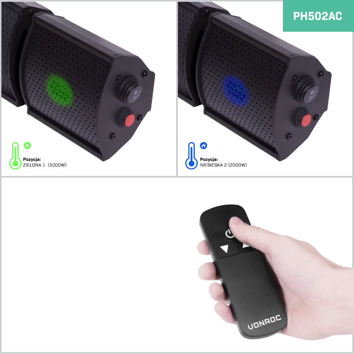 GRZEJNIK MARSILI 2000W Z PILOTEM ZDALNEGO STEROWANIA VONROC PROMIENNIK