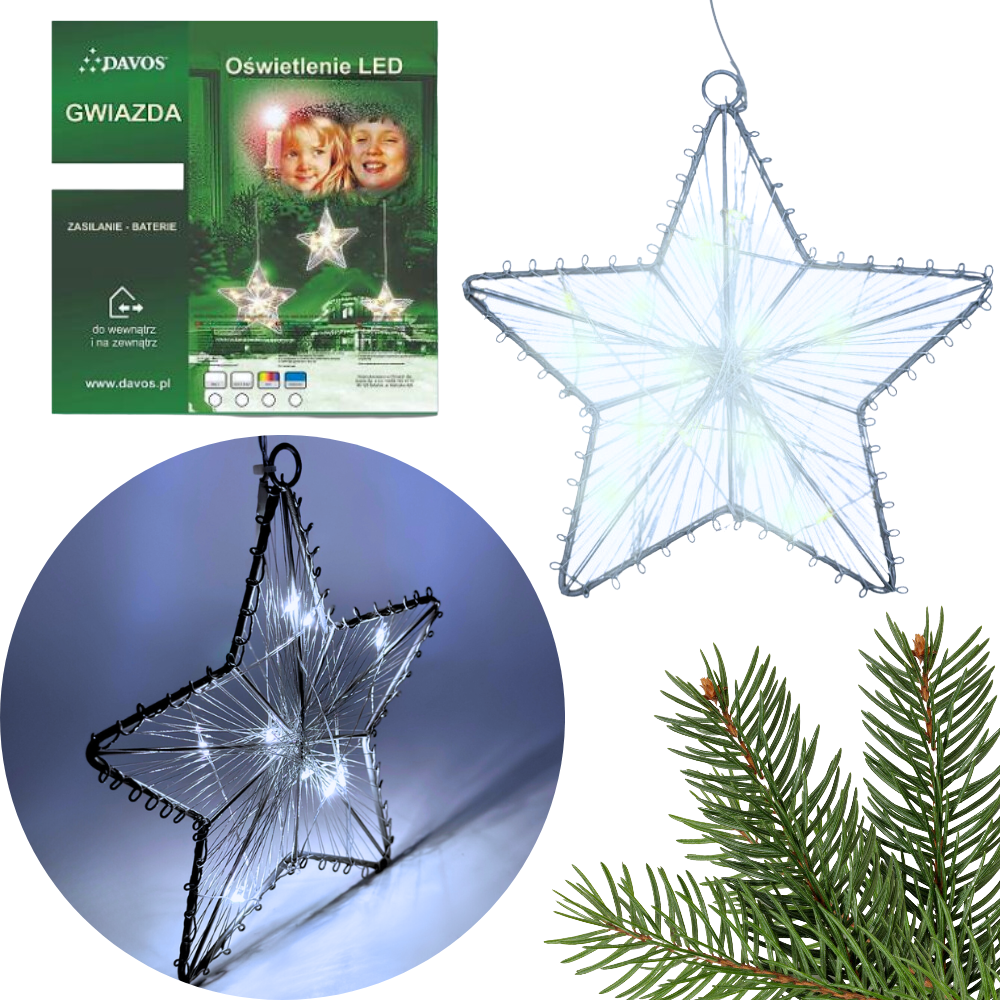 GWIAZDA LAMPKI LED NA BATERIE ZIMNY BIAŁY DEKORACJA ŚWIETLNA