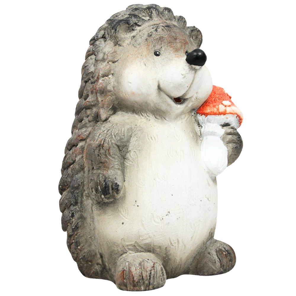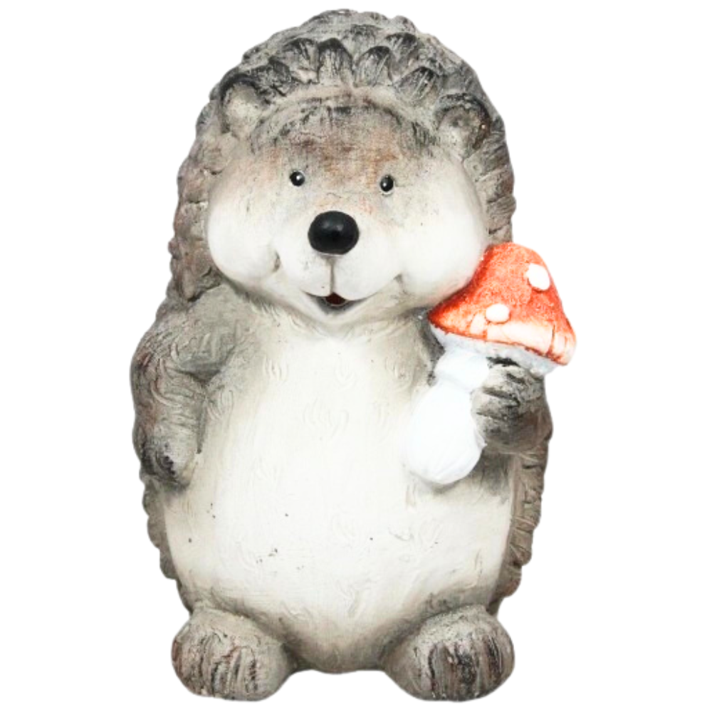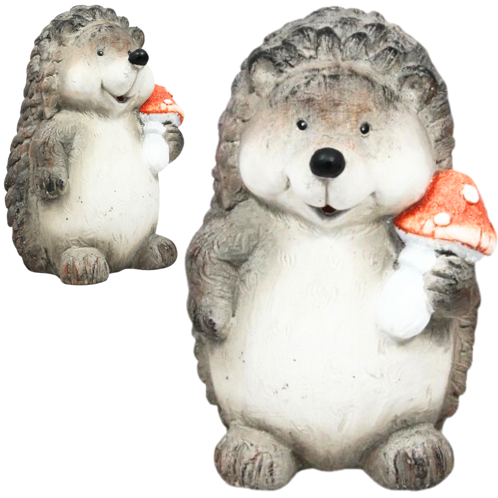 DUŻA OZDOBA FIGURKA OGRODOWA STOJĄCA JEŻ Z MUCHOMOREM 32 CM
