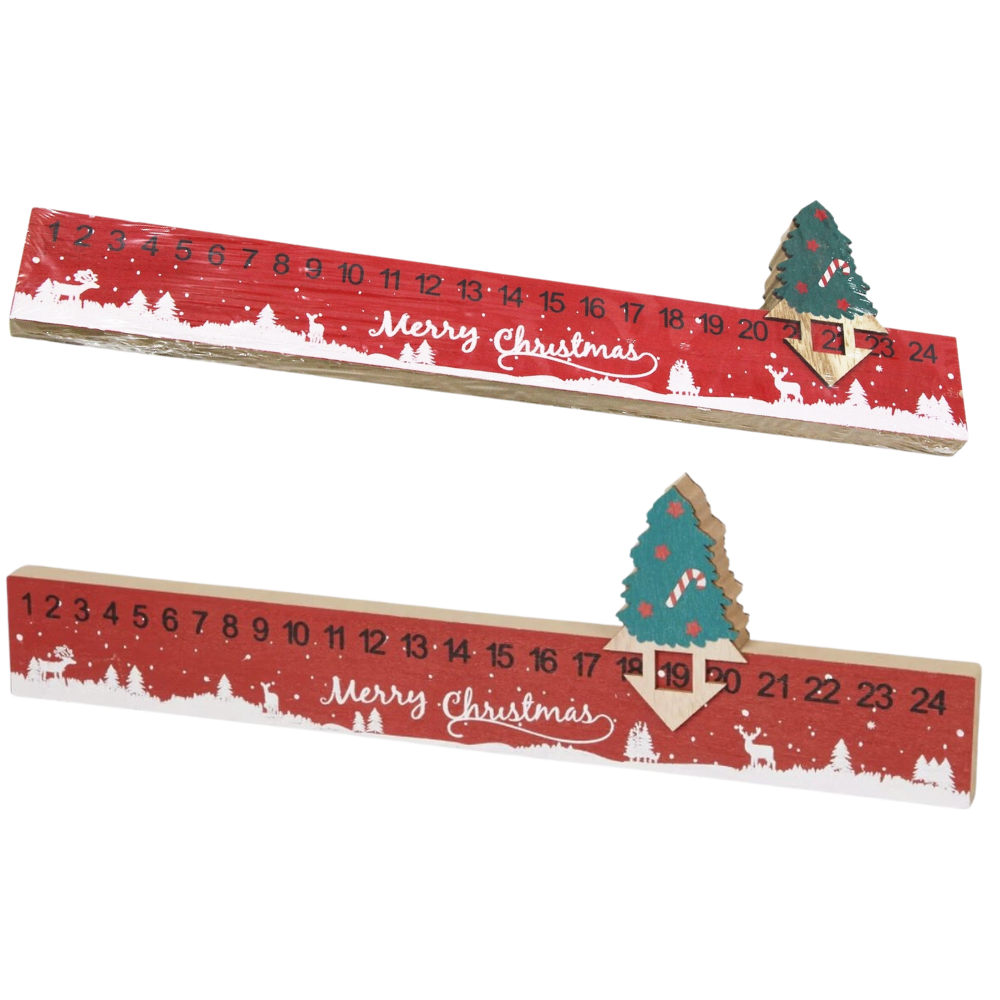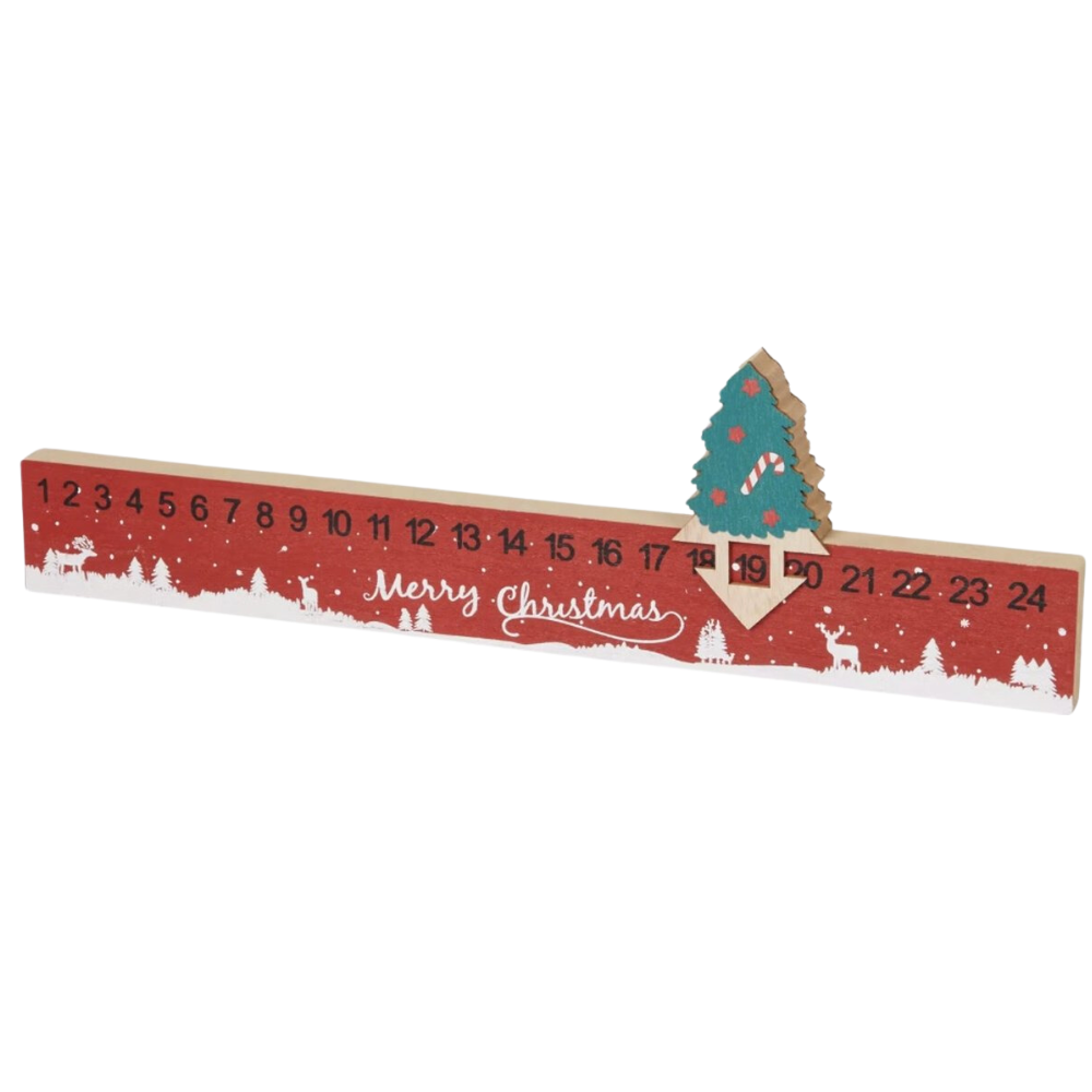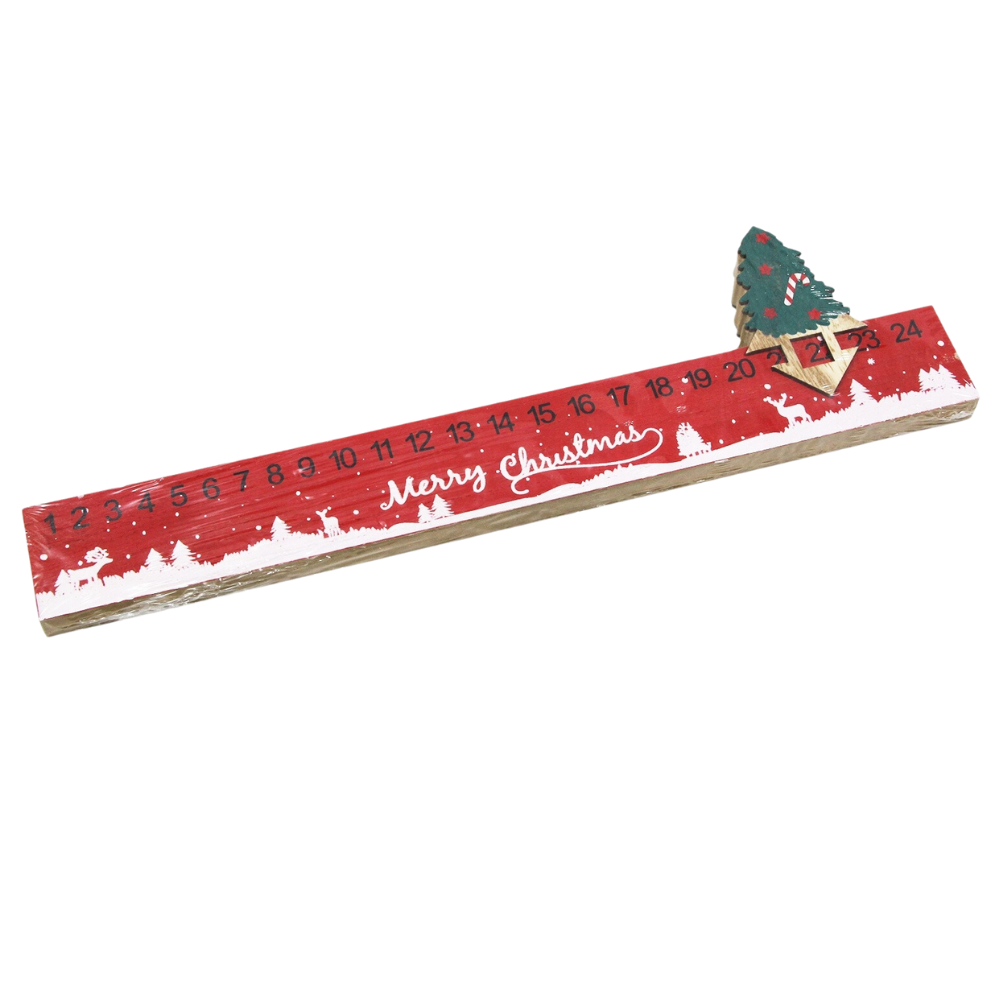 KALENDARZ ADWENTOWY ODLICZANIE DO ŚWIĄT 38X9,5CM STOJĄCY Z CHOINKĄ CZERWONY