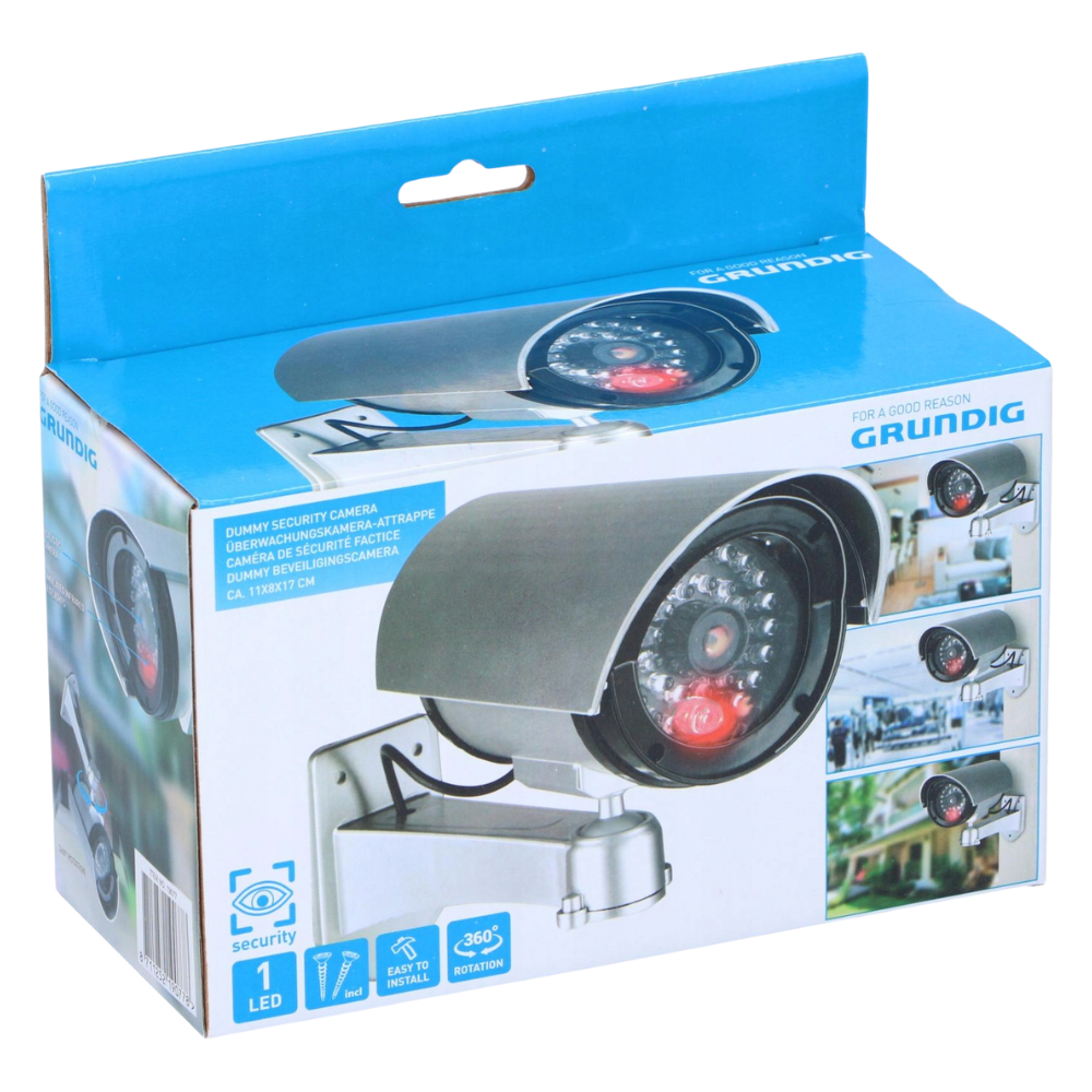 Atrapa kamery firmy Grundig do złudzenia przypomina system monitoringu CCTV co pomoże w zabezpieczeniu własności przed złodziejami. Wysokiej jakości materiały, z których wykonana jest atrapa kamery sprawiają, że nadaje się do stosowania zarówno w pomieszczeniach jak i na zewnątrz.
