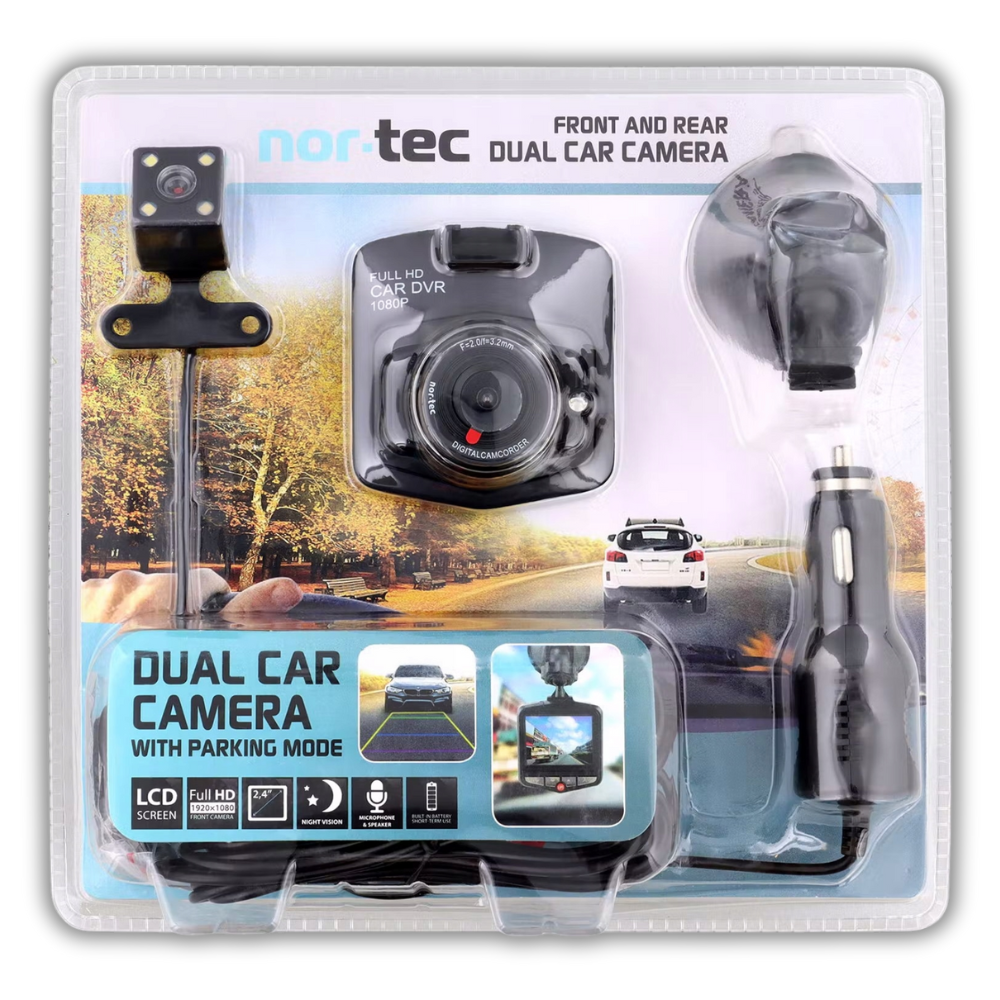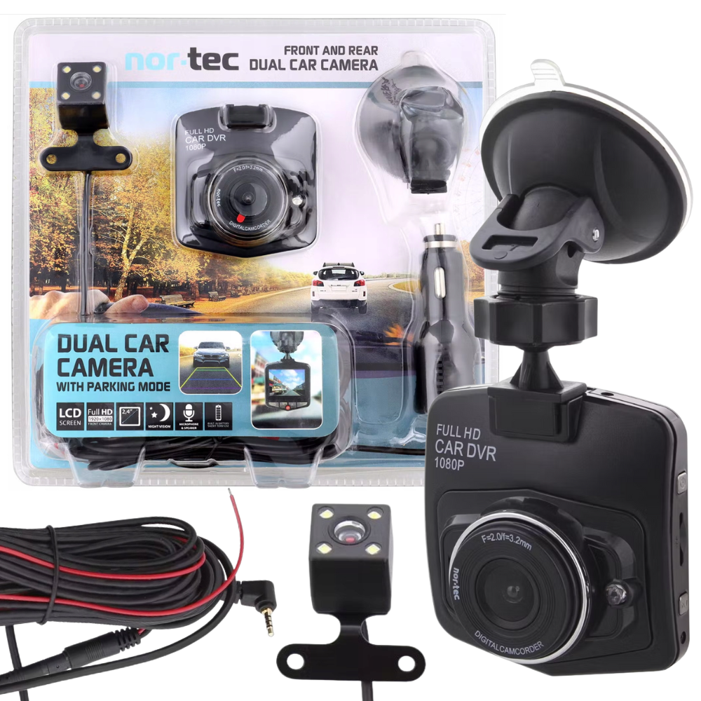 KAMERA SAMOCHODOWA PODWÓJNA NOR-TEC REJESTRATOR JAZDY VIDEO PRZÓD+TYŁ