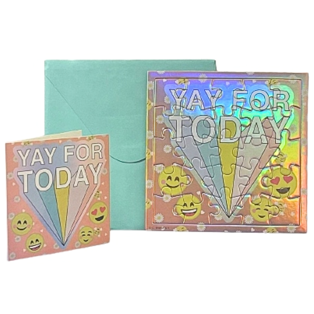 KARTKA Z ŻYCZENIAMI Z PUZZLAMI YAY FOR TODAY 3W1 KARTKI OKOLICZNOŚCIOWE