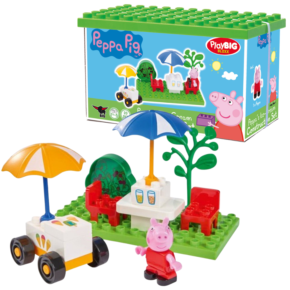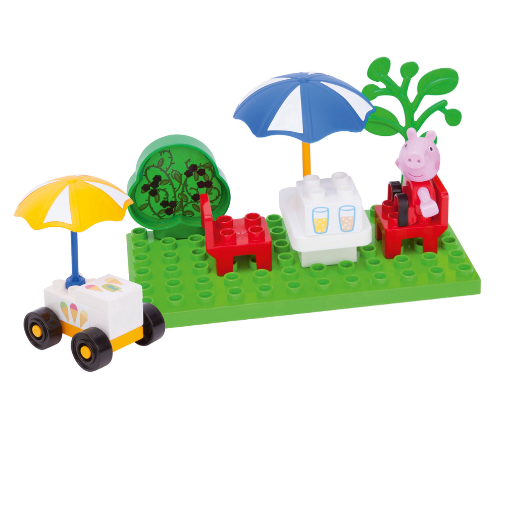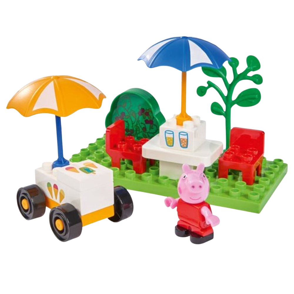 Zestaw pomoże Ci w łatwy sposób stworzyć słodką chwilę z opowieści Peppy i zawiera zielony teren parku, stół i krzesła ogrodowe, parasol, furgonetkę z lodami i oczywiście... sama Peppa.