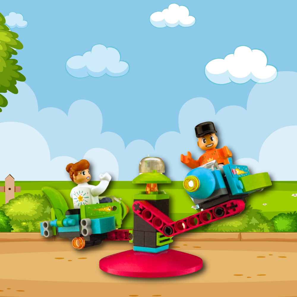 Zacznijmy od samego parku rozrywki, który jest centralnym punktem tego zestawu. Możesz zbudować go według własnego pomysłu, tworząc różnego rodzaju atrakcje i miejsca wypoczynku. Twoja wyobraźnia jest jedynym ograniczeniem!