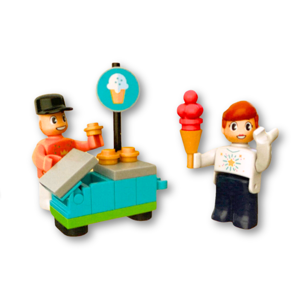 Nie można zapomnieć o ulubionych smakołykach, które można znaleźć w parku rozrywki. Dlatego w zestawie znajduje się również stoisko z lodami.