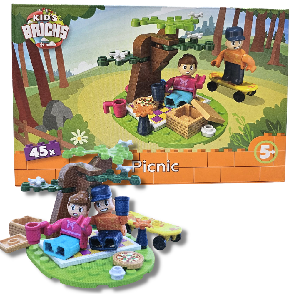 Klocki Kid's Bricks są kompatybilne z innymi popularnymi klockami co pozwoli na rozbudowę pikniku o dodatkowe elementy!