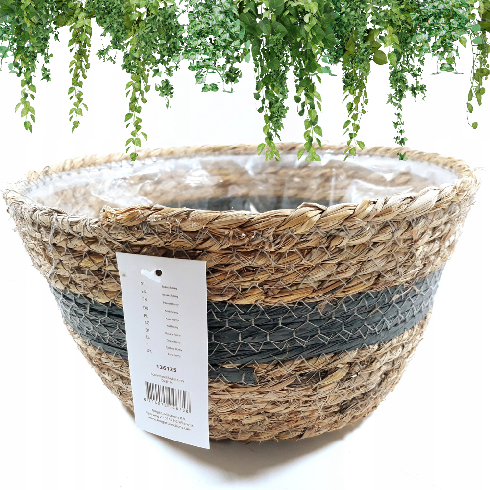 KOSZYK ROMY PLECIONY SZARA WSTAWKA 28CM