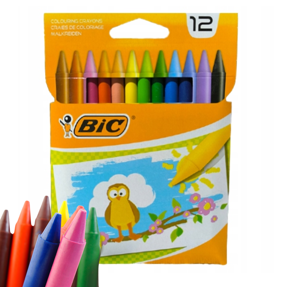 KREDKI ŚWIECOWE 12 KOLORÓW BIC ZESTAW SZKOLNY WYPRAWKA DLA DZIECI DO SZKOŁY