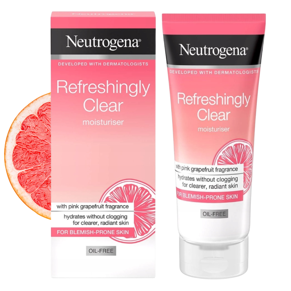 KREM NEUTROGENA CLEAR & RADIANT 50ML MOISTURISER PINK GRAPEFRUIT SKIN FRAGRANCE FOR DRY SKIN OIL-FREE