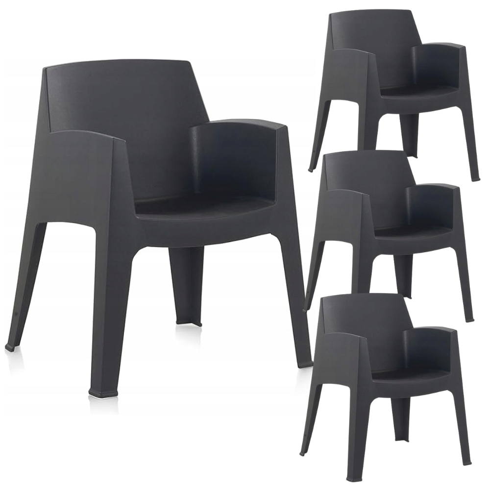 4 SZTUKI ZESTAW KRZESŁO OGRODOWE ANTRACYT DUŻE SOLIDNE NA TARAS