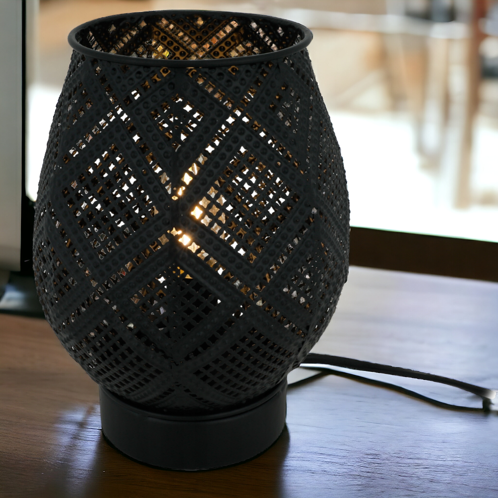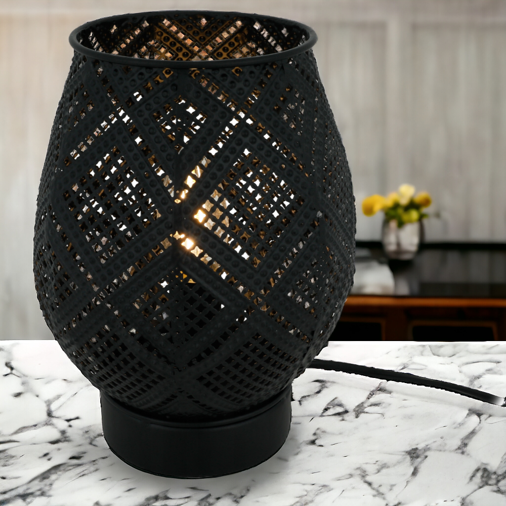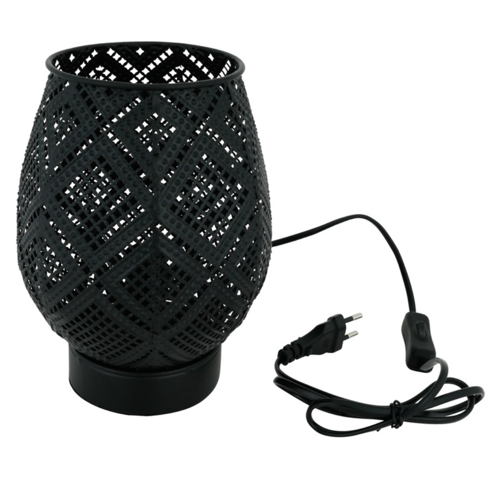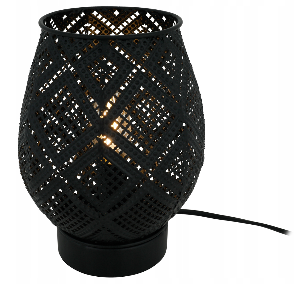 LAMPA DEKORACYJNA OZDOBNA STOŁOWA AŻUROWA METALOWA CZARNA