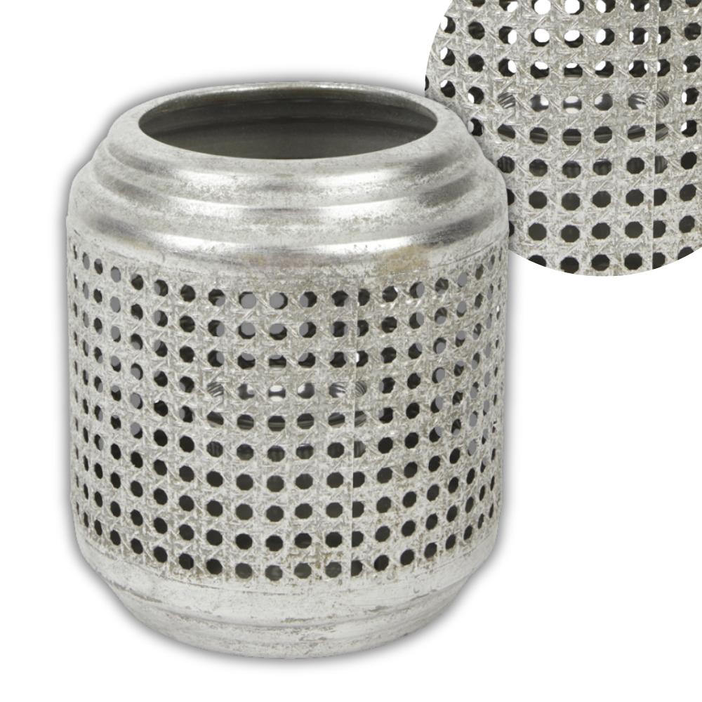 LAMPION AŻUROWY SREBRNY 18X20CM