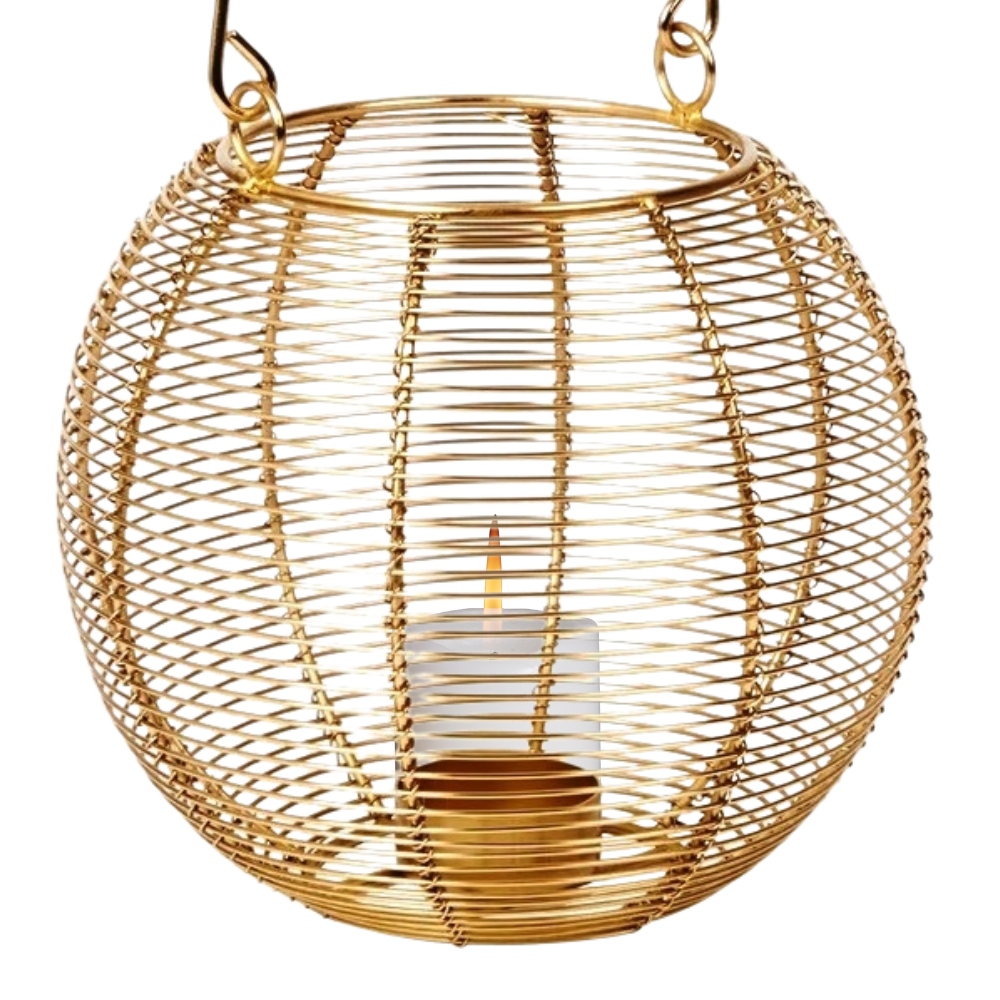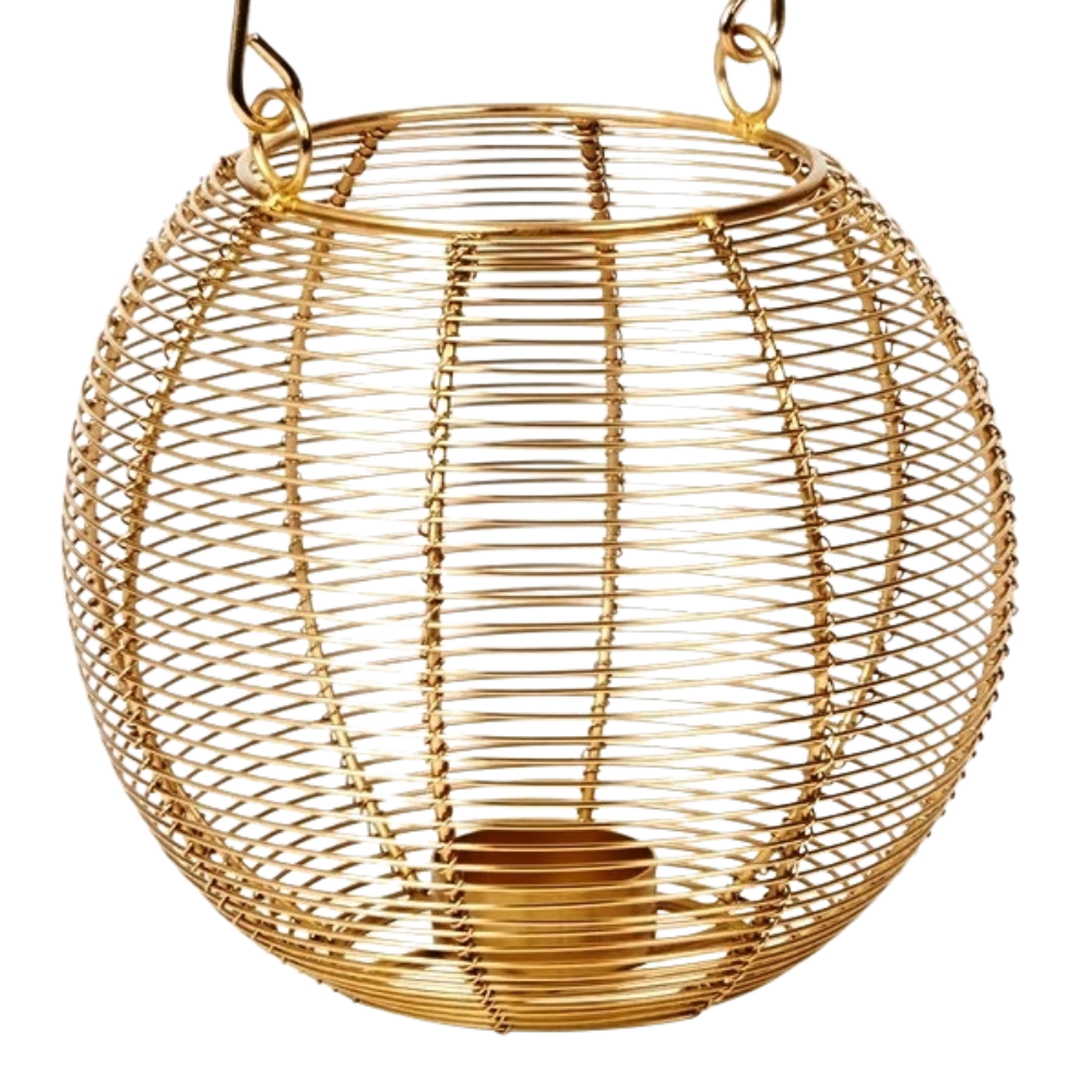 LAMPION METALOWY OKRĄGŁY 18CM - ZŁOTY
