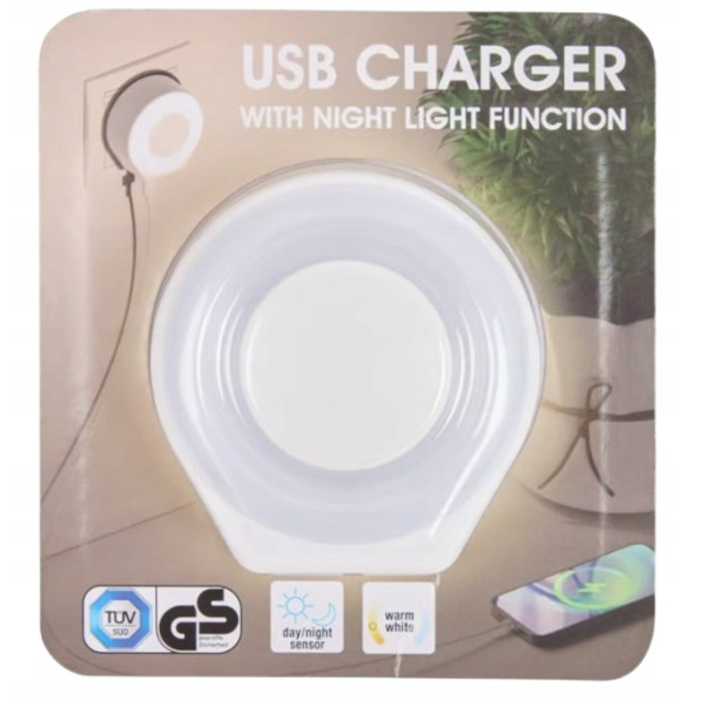 LAMPKA NOCNA DO KONTAKTU Z ŁADOWARKĄ USB-C SENSOR DZIEŃ-NOC CIEPŁY BIAŁY