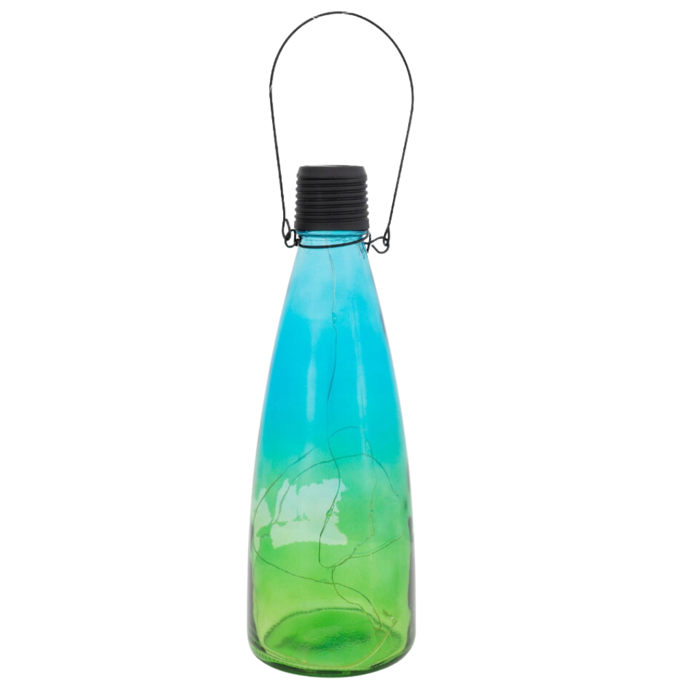 LAMPKA SOLARNA LED BUTELKA WISZĄCA CIENIOWANA ZIELONO NIEBIESKA 24 CM