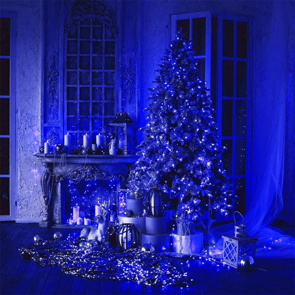 ✅ 2,5 m dekoracji na ciemnozielonym przewodzie w kolorze niebieskim.