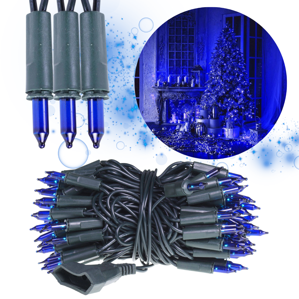 LAMPKI CHOINKOWE ŻARÓWKOWE 100 Z DODATKOWYM GNIAZDEM NIEBIESKIE