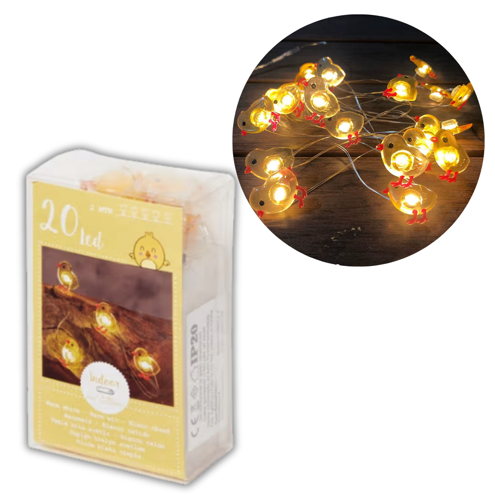 ŁAŃCUCH ŚWIETLNY LED 20 OZDOBA WIELKANOCNA KURCZAKI 2 M