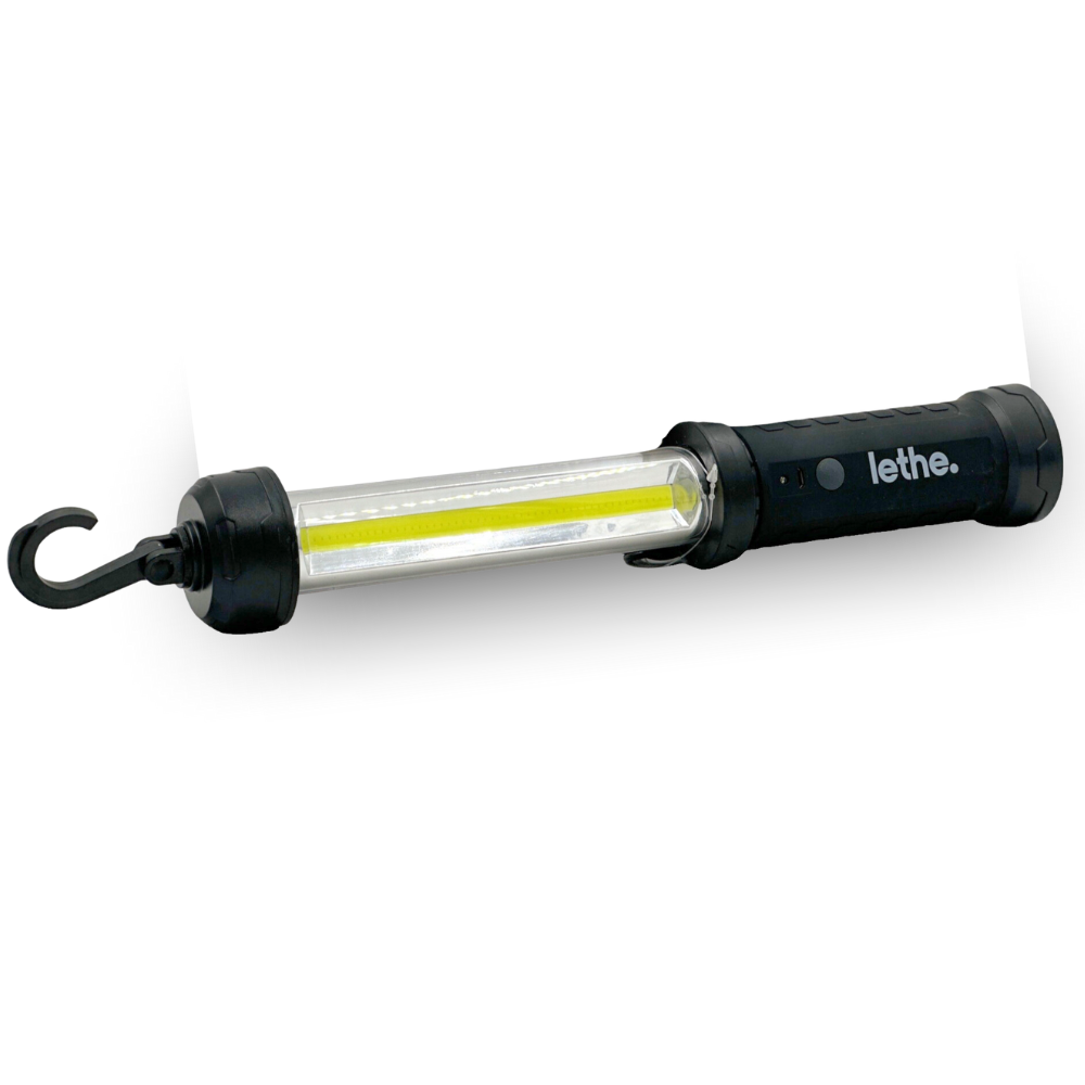Latarka posiada mocny hak i magnes, dzięki czemu można ją zawiesić i wygodnie użytkować.