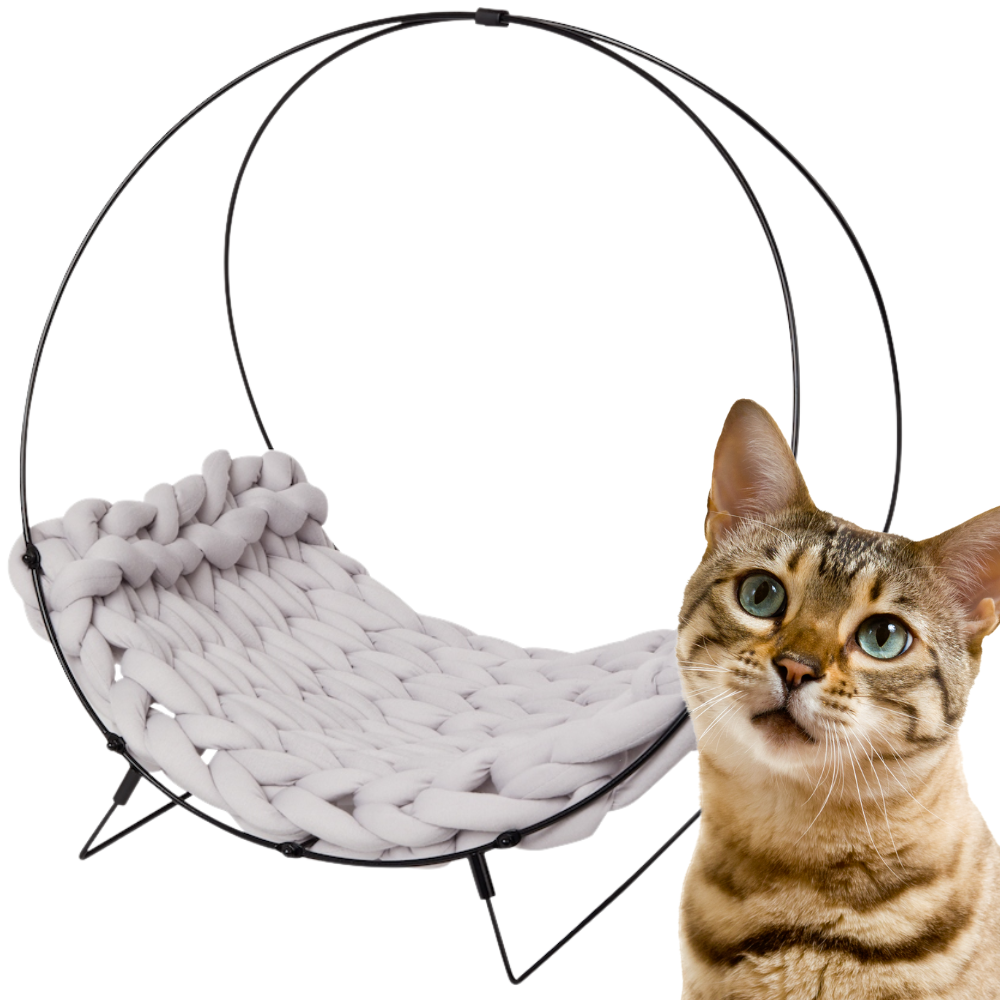 LEGOWISKO DLA KOTA BASKET HAMAK SZARY PLECIONY MATERIAŁOWY METALOWY