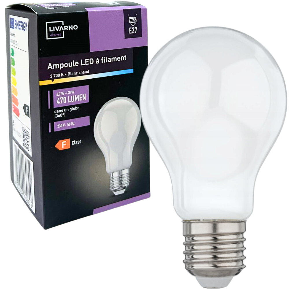 LIVARNO ŻARÓWKA FILAMENTOWA LED E27 470LUMEN 2700K MLECZNOBIAŁA CIEPŁA BIEL