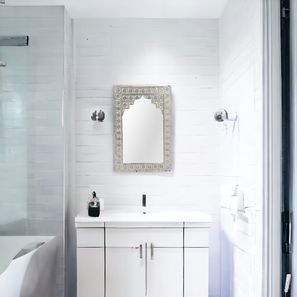 LUSTRO W METALOWEJ RAMIE PROSTOKĄT MAROKO SREBERNE