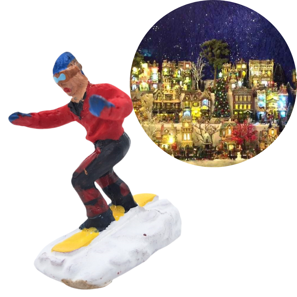 MAGIC VILLAGE ŚWIĄTECZNA FIGURKA CZERWONY SNOWBOARDZISTA DO SZOPKI WIOSKI